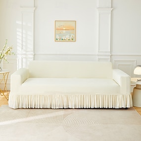 Funda de sofá con falda elástica de jacquard, color sólido, premium, gruesa, antideslizante, universal, para cuatro estaciones.