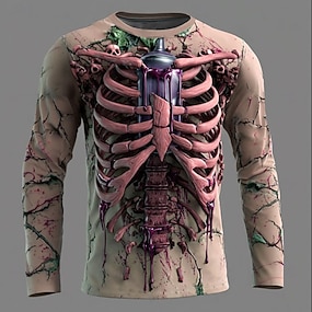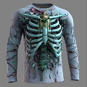 Camiseta de calavera para hombres camiseta 3D de esqueleto de manga larga camiseta con impresión 3D cuello redondo moda exagerada estilo casual diario ropa para primavera otoño