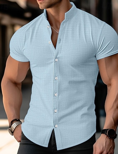Hombre Camisa Camisa de lino Camisa casual Remera de algodón Plano Vacaciones Calle Blanco Azul cielo Caqui Gris Ligero Manga Corta Cuello Vuelto Verano Ropa Abotonar