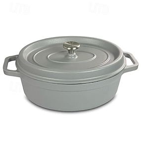 Cacerola ovalada de hierro fundido con tapa antigoteo, color gris claro