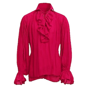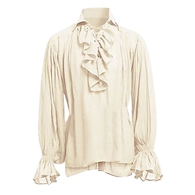Medieval Renacimiento Camisas Larga Pirata Vikingo Disfraz Hombre Vikingo Pirata Víspera de Todos los Santos Carnaval Rendimiento LARP Feria Ren Adulto Camisas