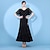 Vestido de baile de salón para mujer, en blanco y negro, con mangas sueltas y escote en V profundo, ideal para baile latino, tango y espectáculos.