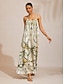 Mono de mujer de gasa verde con estampado de pierna ancha, escote en V, cintura ceñida, elegante, para destacar en destinos de boda, invitadas, uso diario, vacaciones, informal, primavera, verano y