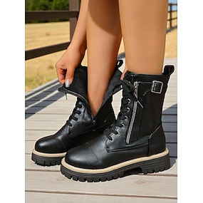 Botas de combate con cordones para mujer con hebilla lateral: suela antideslizante duradera, estilo informal para exteriores y granja, perfectas para usar en otoño e invierno.