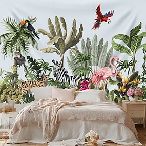 Tapiz Colgante de Plantas Tropicales y Aves Arte de Pared Gran Tapiz Mural Decoración Fondo Fotográfico Mantel Cortina Decoración para el Hogar Dormitorio Sala de Estar