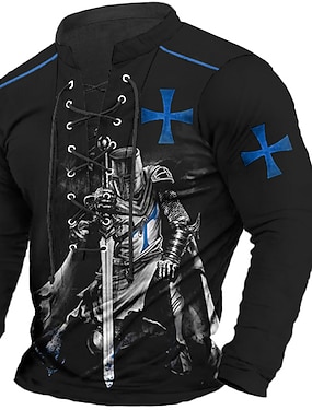 Camisa de hombre Crusaders Caballeros Templarios gráficos impresos camiseta gráfica vintage de manga larga camiseta camisa de moda diseñada casual al aire libre uso diario azul marrón verde ropa de