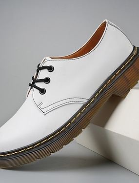 Zapatos casuales blancos con cordones para hombre con costuras amarillas, estilo retro moderno para uso diario y salidas informales.