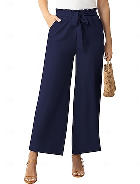 pantalones de salón de pierna ancha para mujer con bolsillos