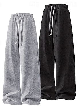 Paquetes múltiples 2 piezas Hombre negro+gris oscuro Pantalones de Deporte Pantalones Correa Cintura elástica Plano Vacaciones Ropa Cotidiana Poliéster Primavera