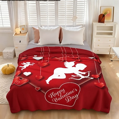 Manta de franela para el Día de San Valentín, funda de sofá con diseño de Cupido, manta para la siesta en la oficina, manta para aire acondicionado, agradable para la piel, para niños, dormitorio de