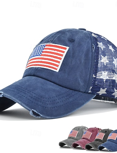 Hombre Gorra de Béisbol Sombrero para el sol Sombrero del camionero Negro Vino Algodón Bordado Moda Casual Calle Diario Bandera estadounidense de los Estados Unidos Ajustable Filtro Solar Transpirable