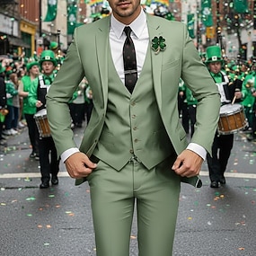 Trajes de fiesta casual del Día de San Patricio para hombres solapa muesca salvia verde oscuro moda fiesta de color sólido ajuste entallado de 3 piezas de un solo botón dos botones