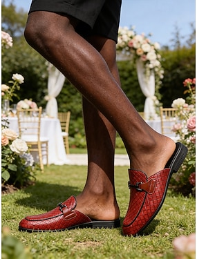 Mocasines rojos sin cordones para hombre, parte superior con relieve de cocodrilo, diseño de mula sin talón, estilo elegante e informal para bodas en la playa, ceremonias en el jardín y eventos de verano.