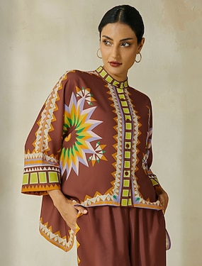Blusa de mujer con estampado botánico paisley verde, de gasa en capas, para uso informal, para vacaciones, primavera, verano y otoño.