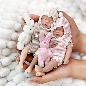 Muñecas de bebé renacidas en miniatura realistas de gemelos Accesorios sorpresa hechos a mano de silicona incluidos para niños de 3 a 6 años - Set de muñeca de bebé recién nacido Regalo de Navidad