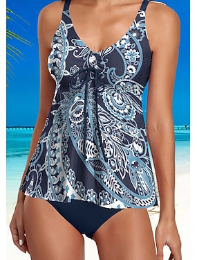 conjunto de traje de baño boho paisley con espalda cruzada y tankini delgado