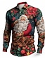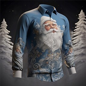 Papá Noel Casual Hombre Camisa Ropa Cotidiana Noche Otoño invierno Cuello Vuelto Manga Larga Azul Piscina, Morado, Verde Trébol S, M, L Tejido elástico en 4 direcciones Camisa Navidad