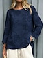 Mujer Blusa Bordado Color sólido Floral Elegante Casual Manga Larga Cuello Barco Tops regulares Diario Azul Piscina Negro Blanco Azul Marino Verano Primavera Otoño