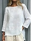 Mujer Blusa Botones Color sólido Elegante Casual Manga 3/4 Escote en Pico Tops regulares Diario Blanco Verde Claro Azul Marino Marrón Albaricoque Verano Primavera Otoño