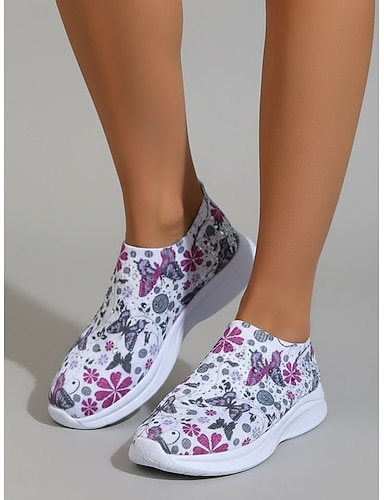Zapatillas deportivas moradas con estampado floral y mariposas para mujer, transpirables, de punto y con pedrería, sin cordones, cómodas y casuales para caminar a diario o en vacaciones. & fin de
