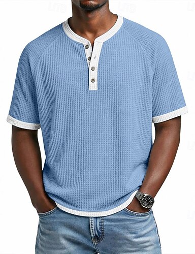 Hombre Camiseta con diseño de gofre Camiseta superior Manga Corta Henley Primavera verano Verano Primavera Color sólido Con Texturas Moda Design Casual Mangas raglanes Casual Diario Exterior Bleu