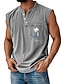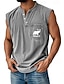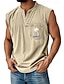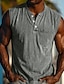 Hombre Camiseta sin mangas Top Camisetas Interiores Camisa 100% algodón con lavado ácido Sin Mangas Henley Verano Plano Moda Design Básico Bolsillo Botones Casual Vacaciones Calle Azul Piscina Negro