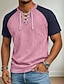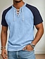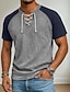 Hombre Henley Shirt Camisa 100% algodón con lavado ácido Manga Corta cuello con cordones Henley Verano Bloque de color Retazos Retro Antiguo Casual Henley Retazos Estilo retro Bloque de Color Casual