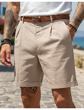 Hombre Pantalones cortos de lino pantalones cortos de vestir Pantalones cortos de verano Pantalones cortos de playa Pantalones cortos plisados Bolsillo Plisado Pierna recta Plano Comodidad