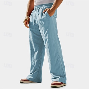 Hombre Pantalones de lino Pantalones Pantalones de verano Pantalones anchos Pantalones de playa Correa Cintura elástica Pierna recta Plano Comodidad Transpirable Longitud total Exterior Casual Diario