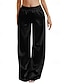 Mujer Perneras anchas Pantalones Pantalones casuales Vacaciones Moda Ropa de calle Longitud total Alta cintura Plano Correa Bolsillo Cintura elástica Comodidad Rígido Diario Vacaciones Calle Negro