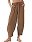 Mujer Pantalones de lino y algodón Perneras anchas Chinos Básico Casual Hasta el Tobillo Alta cintura Plano Bolsillo Cintura elástica Confortable Suave Cómodo Elástico Exterior Vacaciones Calle Vino