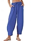 Mujer Pantalones de lino y algodón Chinos Pantalones Vacaciones Ropa de calle Básico Longitud total Media cintura Plano Bolsillo Confortable Comodidad Transpirable Rígido Diario Exterior Calle Azul