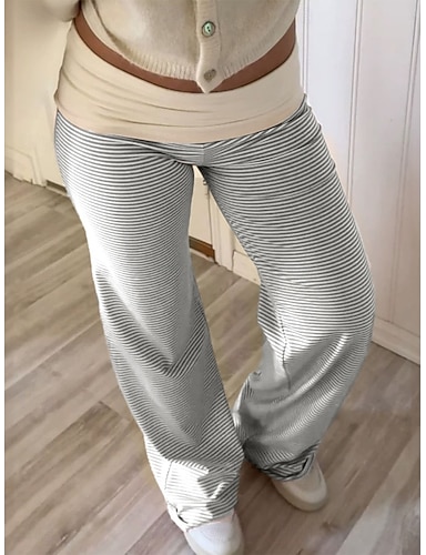 Mujer Pantalones Pantalones de verano Pantalones casuales Vacaciones Moda Ropa de calle Longitud total Alta cintura A Rayas Bolsillo Cintura elástica Estampado Confortable Comodidad Suave Elástico