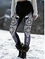 Mujer Vikingo pantalones Polainas Ropa de calle Casual Longitud total Cintura Media Flor Cintura elástica Estampado Confortable Al Aire Libre Cómodo Vacaciones Noche Gris oscuro Vino Blanco y Negro