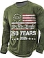 4 de julio de 2026 250º Día de los Caídos Camiseta de hombre gráfica patriótica vintage retro con impresión 3D de bandera nacional veterano de cuello redondo de manga larga