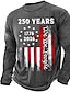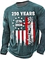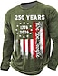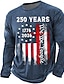 4 de julio de 2026 250º Día de los Caídos Camiseta de Hombres 3D Impresa con la Bandera de EE. UU. de Manga Larga Calle Casual Diaria