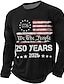 4 de julio de 2026 250º Día de los Caídos Camiseta de Cuello Redondo de Hombres 3D Impresa con la Bandera de EE. UU. de Manga Larga Calle Diaria