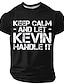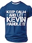 Camiseta divertida para hombre con el mensaje "Mantén la calma y deja que Kevin se encargue", regalo para Kevin. Camiseta gráfica azul marino de manga corta con estampado vintage desgastado. Camiseta