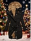 Mujer Chaqueta acolchada Navidad Diario Invierno Largo Abrigo Moda Ropa de calle Chaquetas Manga Larga Detalles en Piel Retazos Negro Rosa Azul Marino