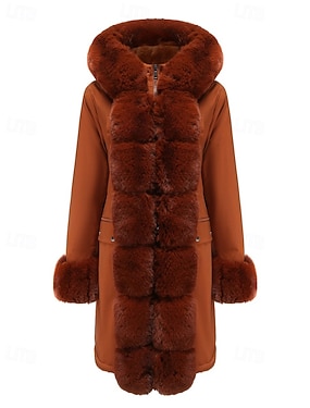 Mujer Abrigo de invierno Chaqueta con capucha Mantiene abrigado Cómodo Detalles en Piel Cremallera Bolsillo Casual Plano Vacaciones Ropa Cotidiana Noche Fin de semana Largo Con Capucha Ajuste regular