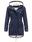 Mujer Anorak Cómodo Transpirable Bolsillo Botones Casual Plano Vacaciones Calle Casual Ropa Cotidiana Botonadura Simple Largo Cuello Vuelto Ajuste regular Manga Larga Ropa de calle Negro Azul Piscina