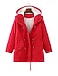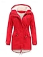 Mujer Anorak Cómodo Transpirable Detalles en Piel Bolsillo Botones Casual Plano Vacaciones Calle Casual Ropa Cotidiana Cremallera Largo Con Capucha Ajuste regular Manga Larga Ropa de calle Negro Rojo