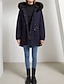 Mujer Abrigo de invierno Anorak Mantiene abrigado Cómodo Detalles en Piel Cremallera Bolsillo Casual Plano Exterior Vacaciones Noche Fin de semana Largo Con Capucha Ajuste regular Manga Larga Ropa de