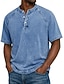 Hombre Henley Shirt Camisa 100% algodón con lavado ácido camiseta Manga Corta Un Color Retro Antiguo Casual Estilo retro Lavado Henley Casual Verano Primavera Otoño Negro Rosa Verde Claro Camiseta