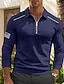 Hombre Camiseta de golf Polo con bandera americana Casual Trabajo Zip Cremallera de un cuarto Manga Larga Moda Cómodo Bandera Cerrar Bordado Primavera Primavera & Otoño Ajustado Negro Blanco Azul