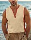 Hombre Henley Shirt Top Camiseta de tirantes de lino Camisa sin mangas Sin Mangas Henley Verano Plano Moda Design Bohemio Botones Vacaciones Casual Noche Negro Blanco Rosa Camiseta superior para