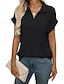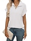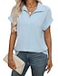 Mujer Blusa Frunce Color sólido Diario Básico Casual Manga Corta Escote en Pico Tops regulares Diario Azul Piscina Negro Blanco Vino Morado Verano