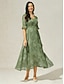 Mujer Vestido Midi Vestido de una línea Vacaciones Casual Boho Ajuste regular Floral Graphic Manga Corta Escote en Pico Azul Piscina Rojo Morado Verde Trébol Verano Primavera