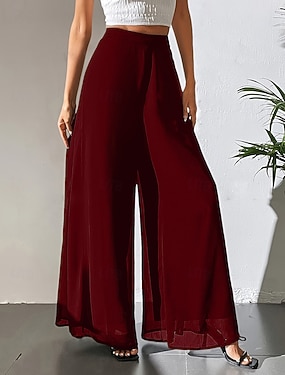 Mujer Perneras anchas Pantalones Vacaciones Ropa de calle Ligeras Longitud total Alta cintura Plano Cintura elástica Corte alto Transpirabilidad Cómodo Microelástico Exterior Festivos Ropa Cotidiana