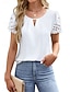 Mujer Camiseta Camiseta superior Ojal Plano Moda Elegante Clásico Manga Corta Cuello Barco Tops regulares Diario Noche Fin de semana Negro Blanco Rosa Albaricoque Verano Primavera